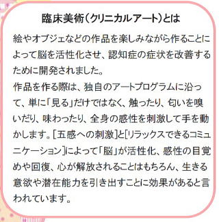 ・「脳が喜ぶ、心が笑う」臨床美術を通して、心の内に秘められた感性を掘り起こし脳を活性化する